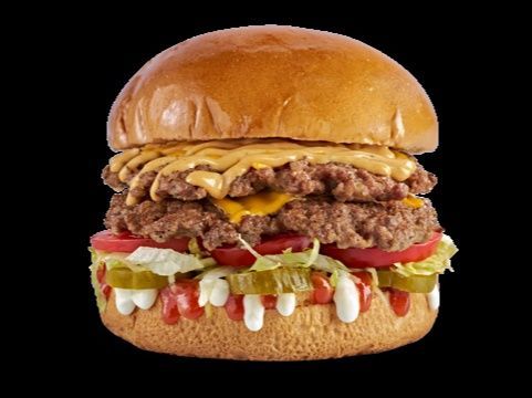 Two slices of meat - tomatoes - lettuce - pickled cucumbers - orma sauce - mozzarella steak - cheddar sauce -