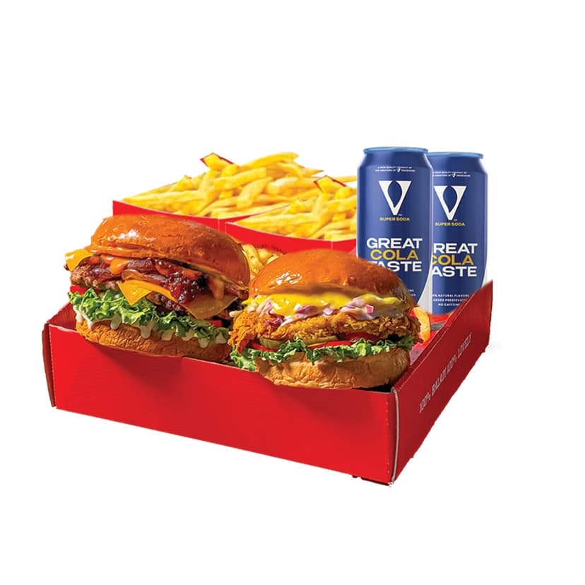 2classic chicken 2hereford smash 2 fries +2 vcola